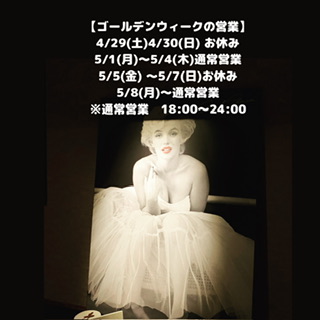 ゴールデンウィーク始まりましたね。ちょっとリフレッシュ休暇をいただきますが、5/1(月)〜5/4(木) 18:00〜24:00 営業します!遊びに来てくださいね。