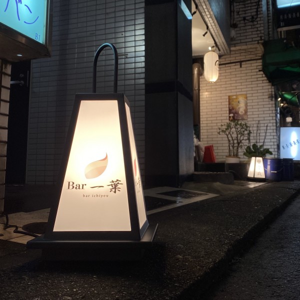 行燈 あんどん。階段上に目印の看板💡お食事帰りの一見さま、Bar一葉を見つけてくれるかなー。勇氣をもって降りて来てくれたら嬉しいです。そんな願いを込めて本日もお待ちしております😊