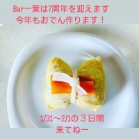 もうすぐ2月ですね。2月1日はBar一葉の誕生日🎂です。お陰様で7周年を迎えます㊗️優しいお客様に支えていただき、ここまでやってこれました😢ありがとうございます。つきましては、1月30日(木)〜2月1日(土)までの3...