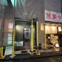 ビルの外壁塗装してます。鉄柱にぶつからないようにお越しくださいね。今週も皆様のお越しを心よりお待ちしております😊明日は諸用により19:30からオープンします🙇♀️